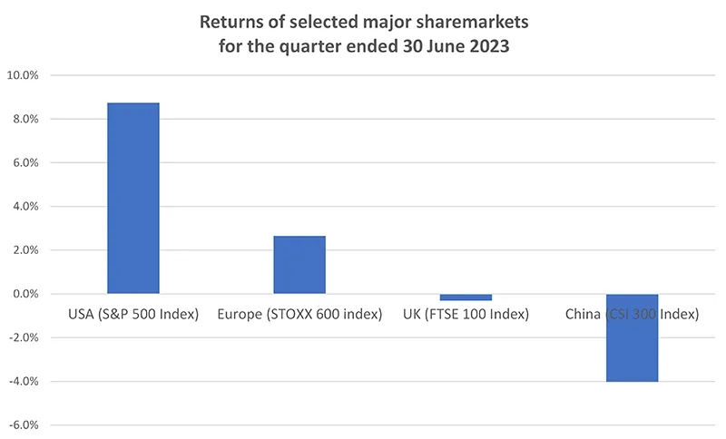 The quarter was another one dominated by investors changing views on whether central banks could engineer a slowing in economies sufficient to reduce inflation back towards official target levels, but without forcing a recession – the fabled “soft landing”. Increasingly, the answer is different for different countries and therefore the performance of individual countries’ share markets during the quarter were quite different.